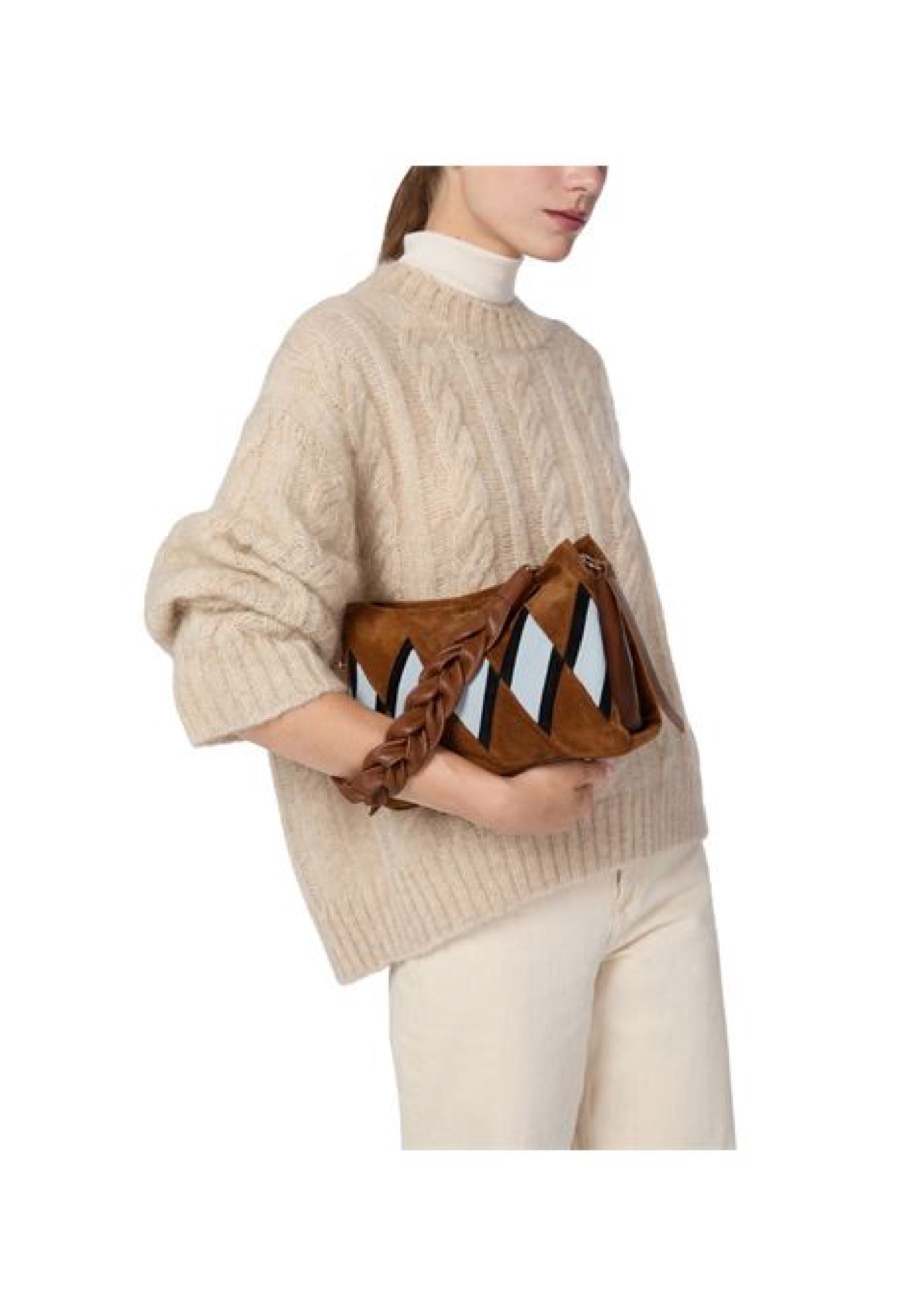 BORSA A SPALLA E TRACOLLA COCCINELLE BOHEME NEW GEO.PATCH E1T66580101 MULTICOLOR-COGNAC-NOIR