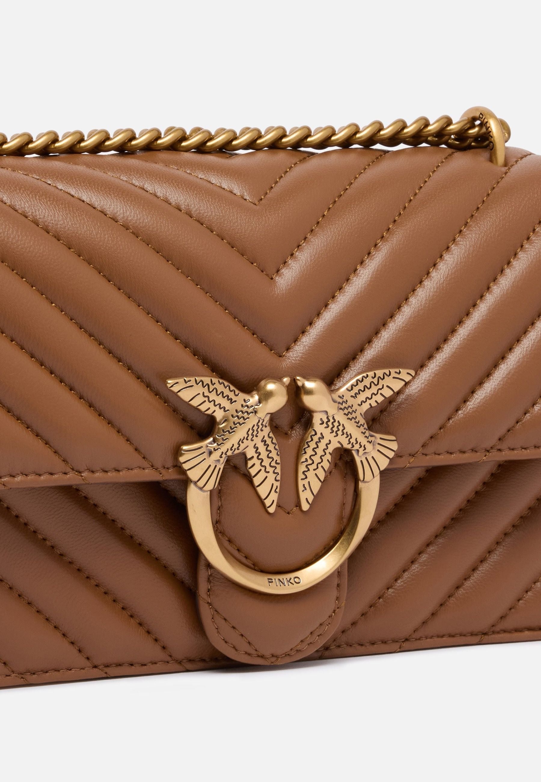 BORSA PINKO LOVE ONE MINI CHEVRON 100074 A0GK L17Q MARRONE LEONE