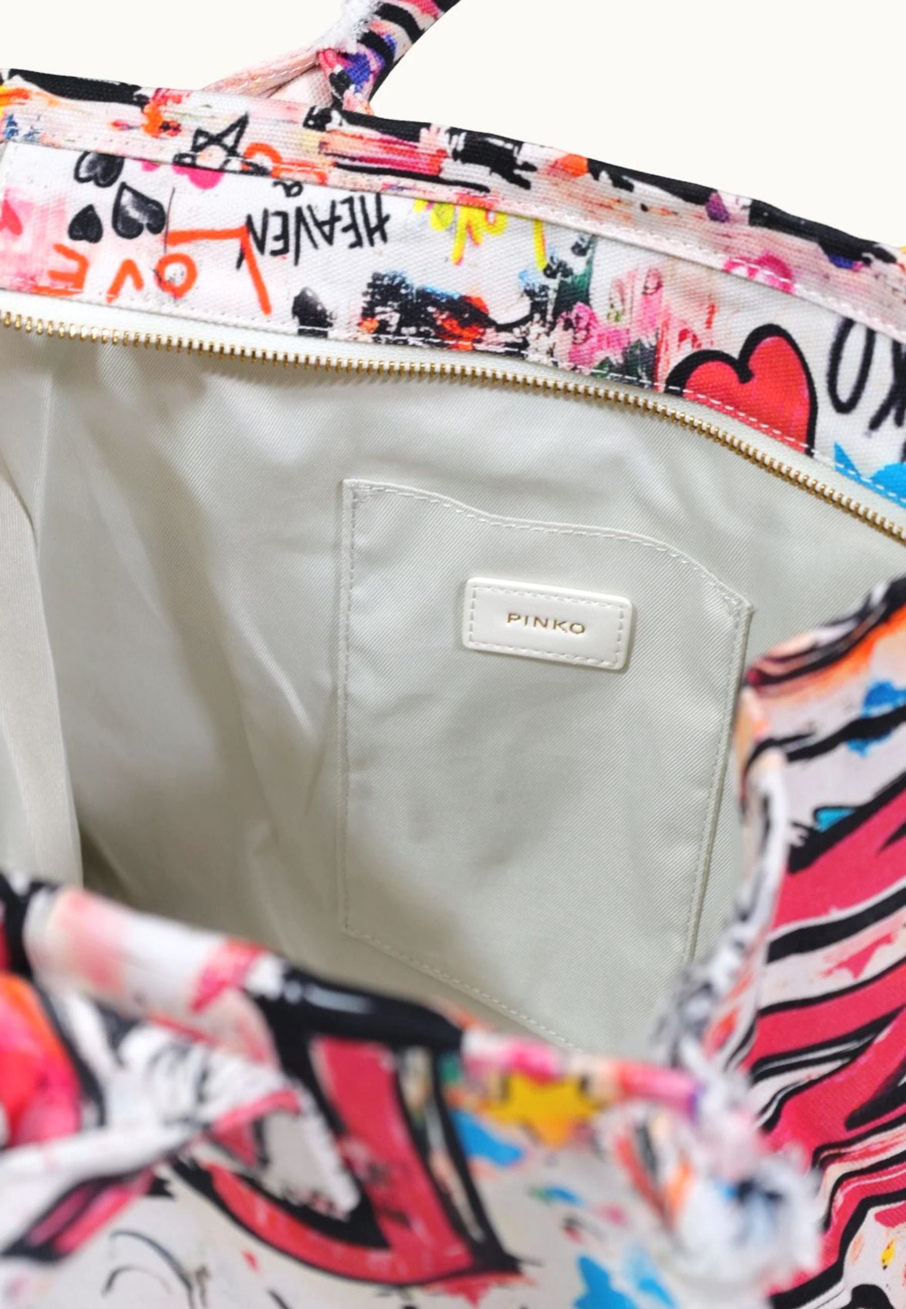 BORSA PINKO SHOPPING BEACH CANVAS 106673 A3B6 ZW0Q BIANCO MULTICOLOR